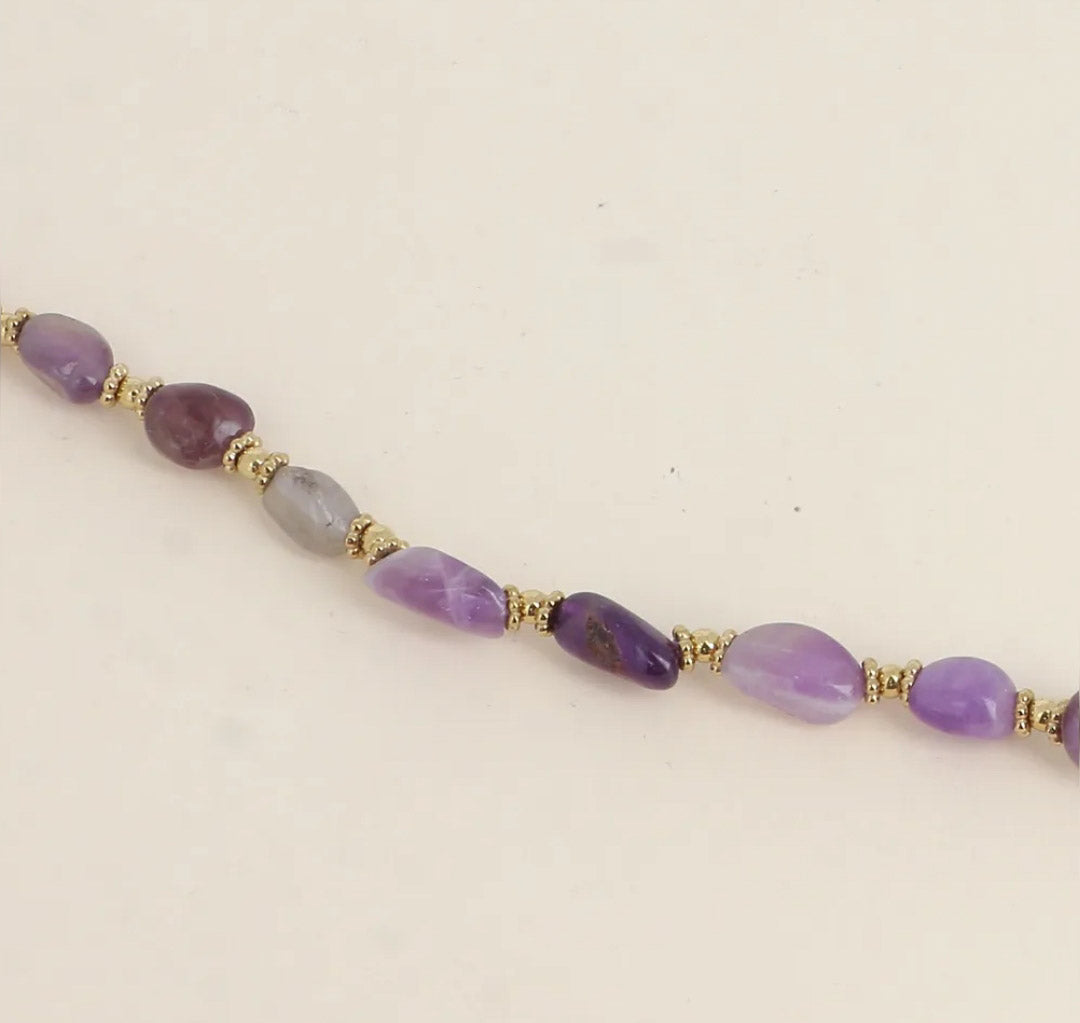 Le bracelet MONA est un bracelet sur câble composé de pierres naturelles et de perles en acier inoxydable.